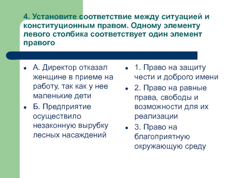 А. Директор отказал женщине в приеме на работу, так как у нее маленькие дети