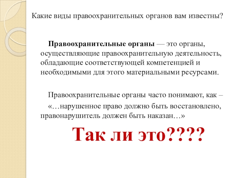 Слайд 16Какие виды правоохранительных органов вам известны?
