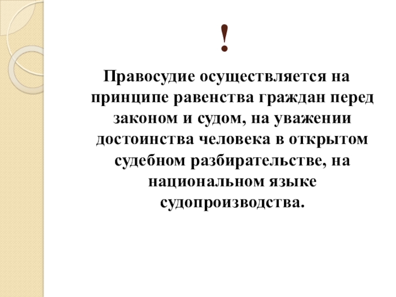 Правосудие осуществляется на принципе равенства граждан перед законом и судом, на