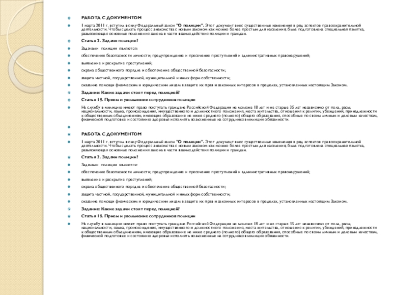 РАБОТА С ДОКУМЕНТОМ ФЗ «О полиции»