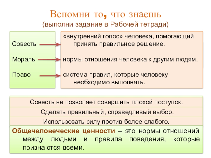 Задание: определи смысл выражений, подчеркни то из них, которое не относится к общечеловеческим ценностям (повышенный уровень).