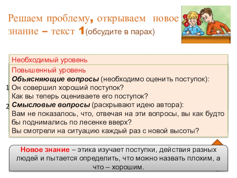 Новое знание – этика изучает поступки, действия разных людей и пытается определить, что можно назвать плохим, а что – хорошим.