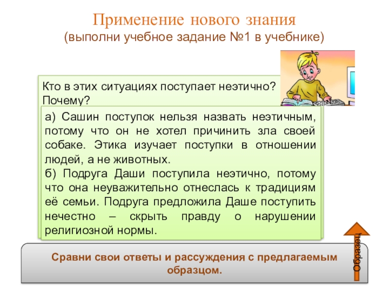 Объясняющий – почему мальчик, задумав хорошее дело, не смог поступить правильно?