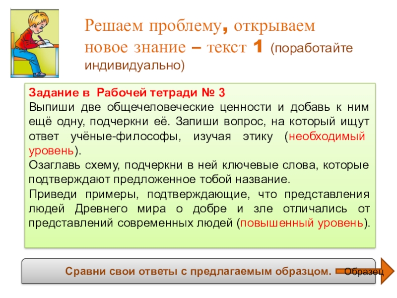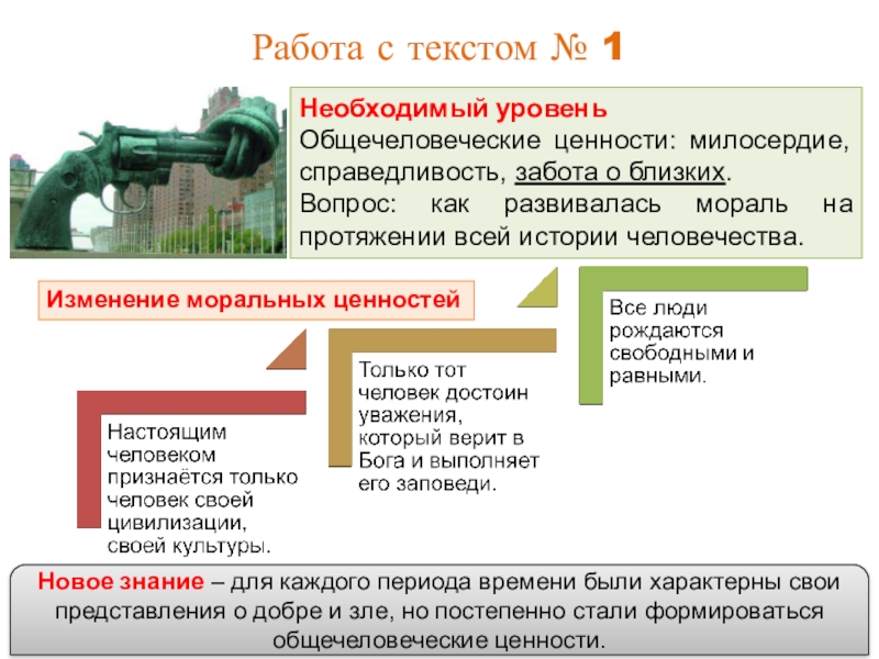 Новое знание – для каждого периода времени были характерны свои представления о добре и зле, но постепенно стали формироваться общечеловеческие ценности.