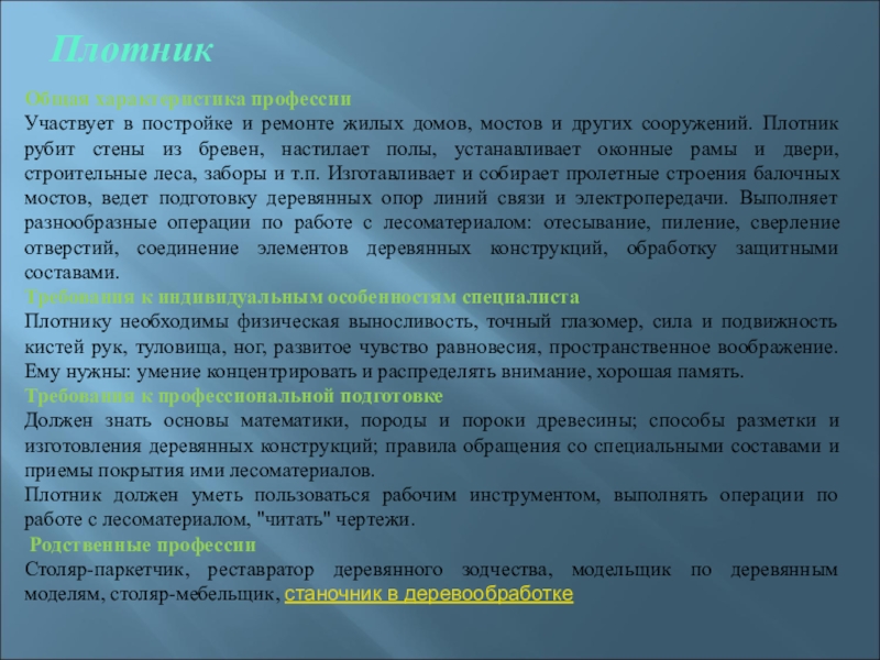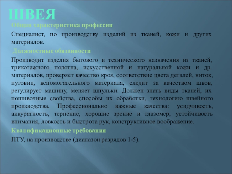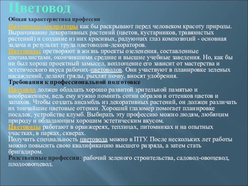 Общая характеристика профессии .