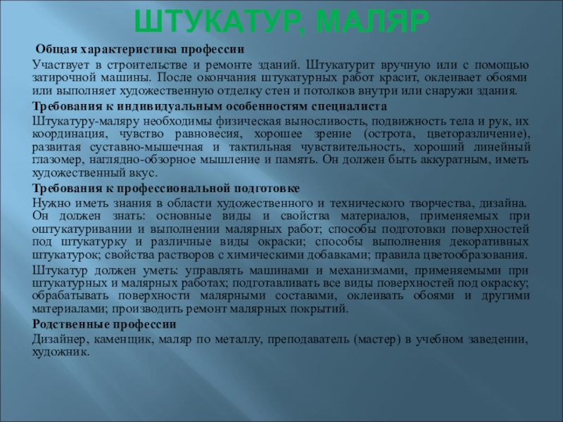 ШТУКАТУР, МАЛЯР