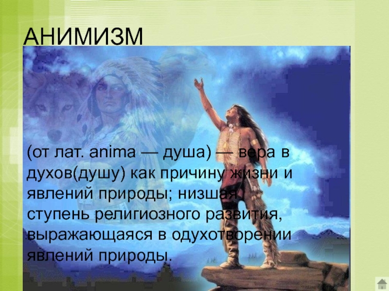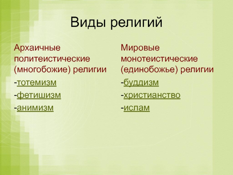 одна из форм общественного сознания; совокупность духовных представлений, основывающихся на вере в сверхъестественные силы и существа (богов, духов), которые являются предметом поклонения