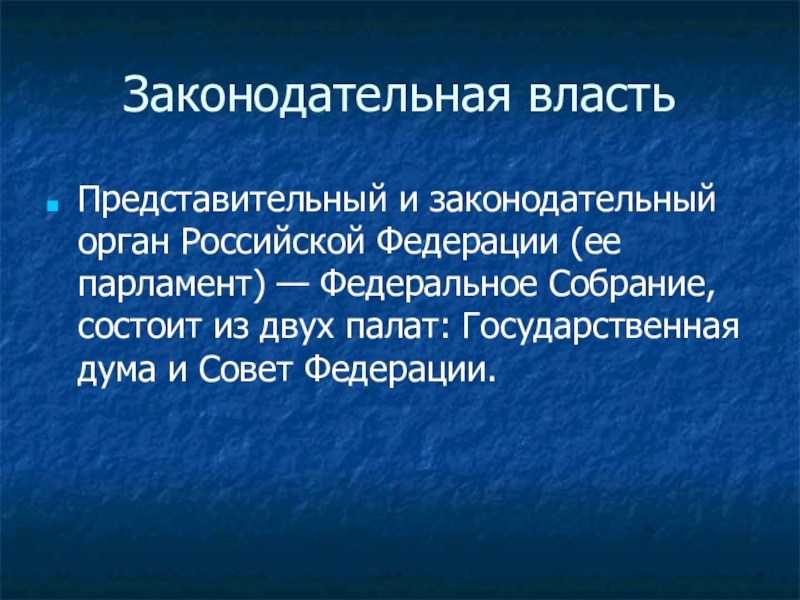 Представительный и законодательный орган Российской Федерации (ее парламент) — Федеральное
