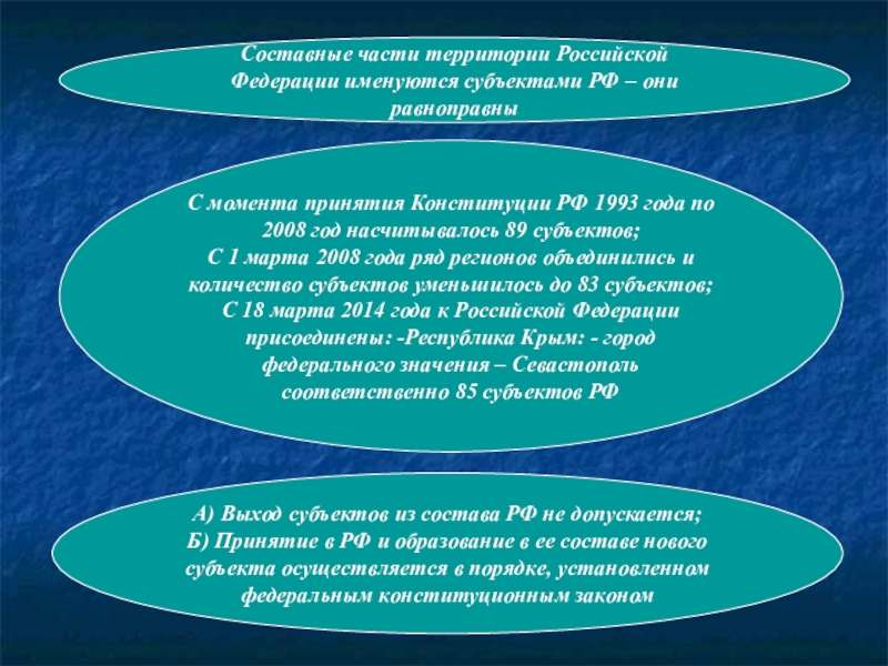 Составные части территории Российской Федерации именуются субъектами РФ – они равноправны