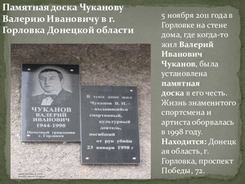 Памятная доска Чуканову Валерию Ивановичу в г. Горловка Донецкой области
