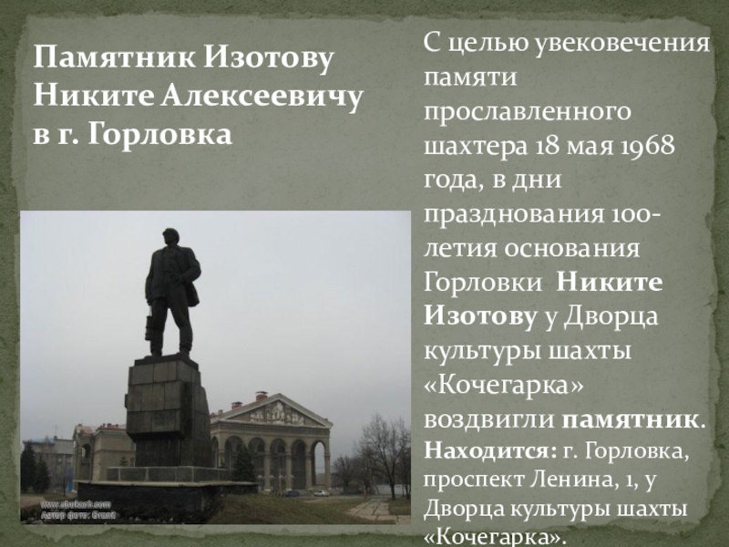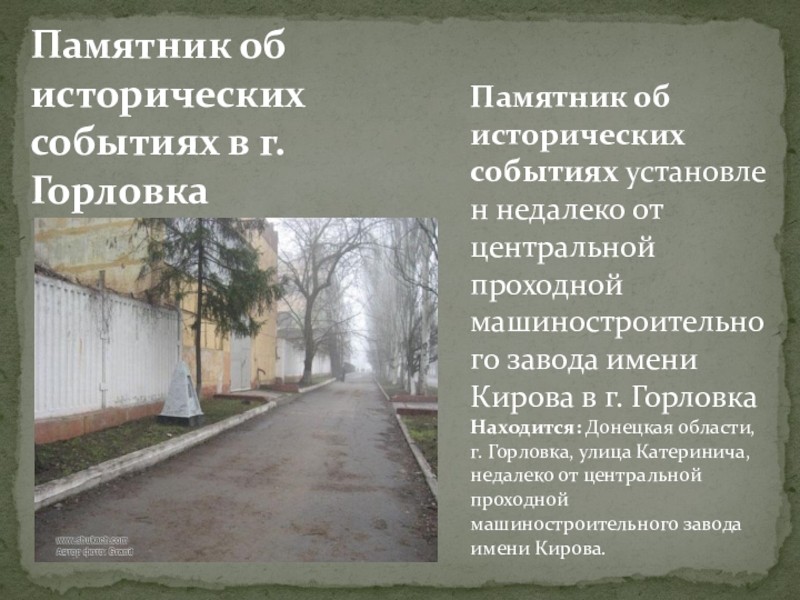 Находится: Донецкая область, г. Горловка, улица Интернациональная.