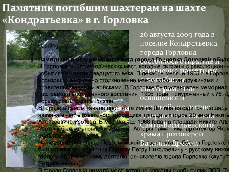 Памятник погибшим шахтерам на шахте «Кондратьевка» в г. Горловка