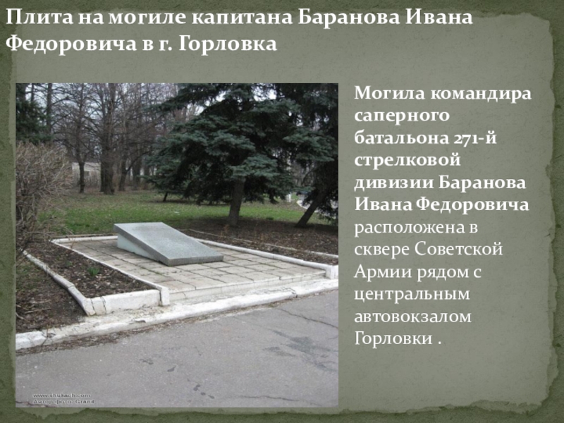 Плита на могиле капитана Баранова Ивана Федоровича в г. Горловка