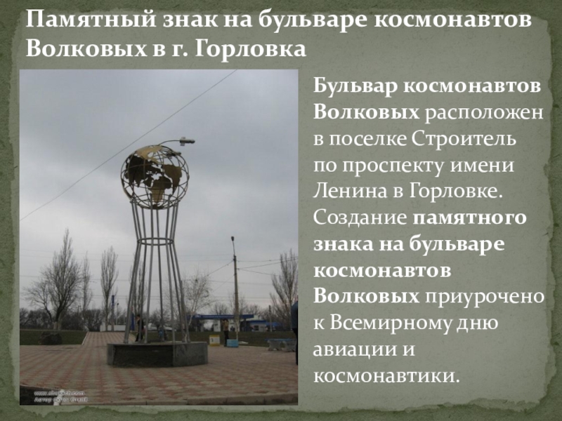 Памятный знак на бульваре космонавтов Волковых в г. Горловка