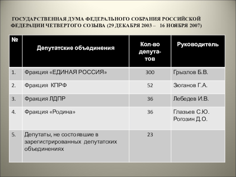 ГОСУДАРСТВЕННАЯ ДУМА ФЕДЕРАЛЬНОГО СОБРАНИЯ РОССИЙСКОЙ ФЕДЕРАЦИИ ШЕСТОГО СОЗЫВА (4 ДЕКАБРЯ 2011 – по настоящее время)