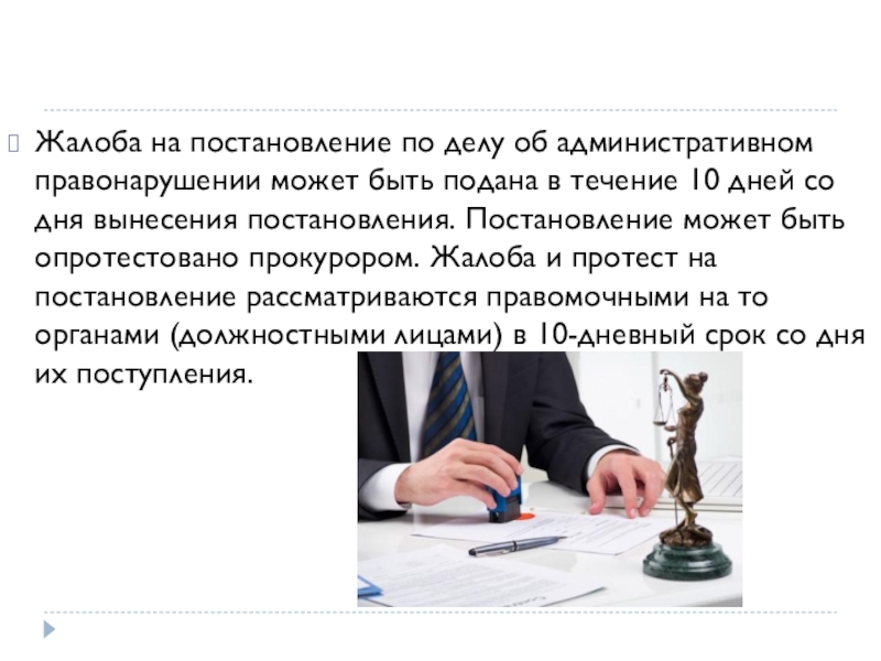 Слайд 8Жалоба на постановление по делу об административном правонарушении может быть подана