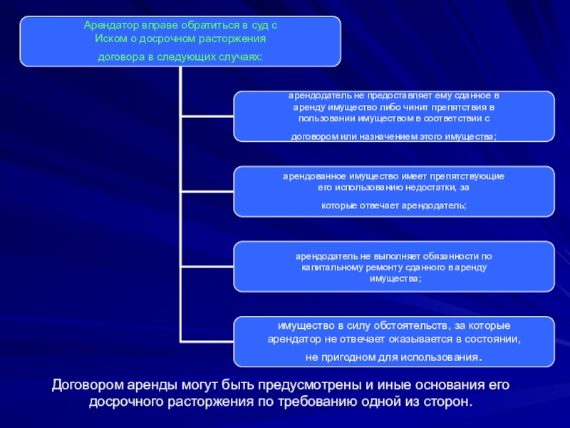 Слайд 12Договором аренды могут быть предусмотрены и иные основания его досрочного расторжения