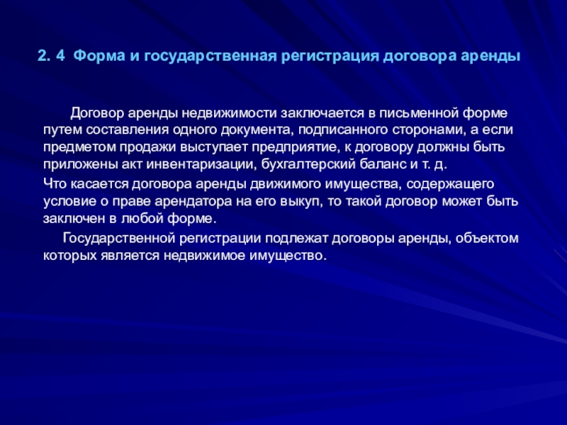 Слайд 82. 4 Форма и государственная регистрация договора аренды