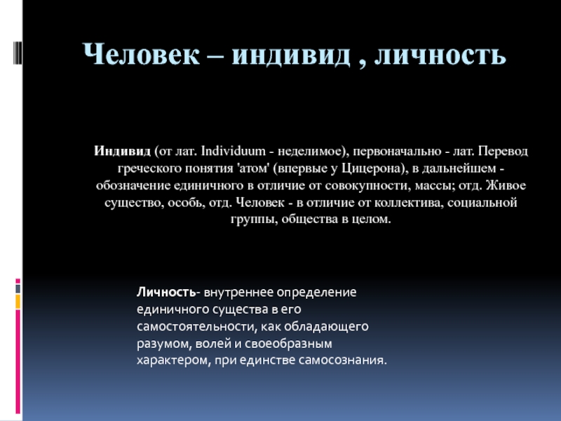 Личность- внутреннее определение единичного существа в его самостоятельности, как обладающего разумом, волей и своеобразным характером, при единстве самосознания.