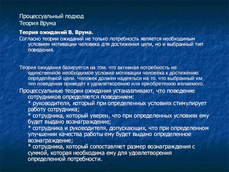 Процессуальные теории ожидания устанавливают, что поведение сотрудников определяется поведением: