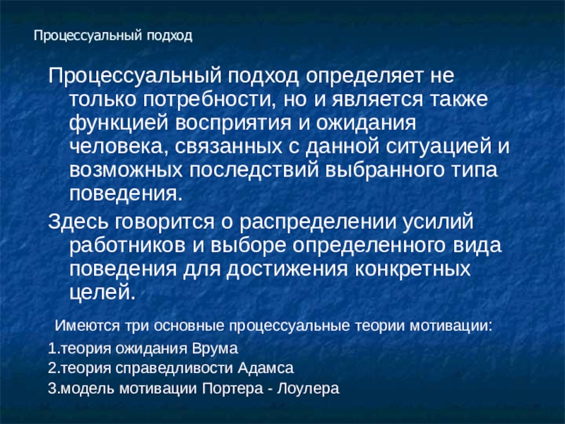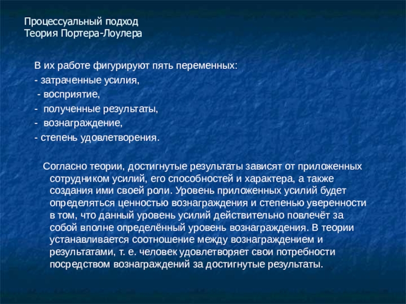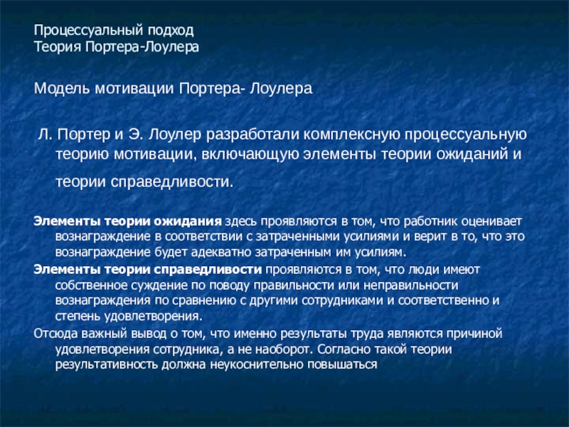 разработали комплексную процессуальную теорию мотивации, включающую элементы теории ожиданий и теории справедливости.
