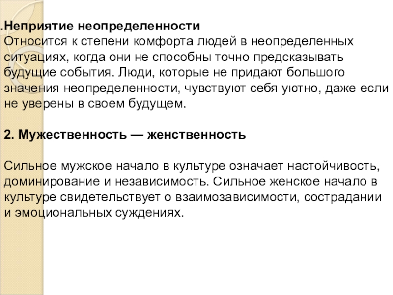 Относится к степени комфорта людей в неопределенных ситуациях, когда