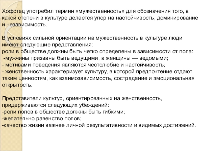 Хофстед употребил термин «мужественность» для обозначения того, в какой степени в