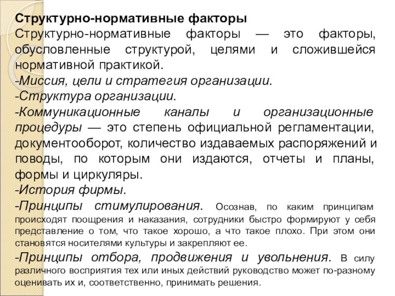 Структурно-нормативные факторы — это факторы, обусловленные структурой, целями и