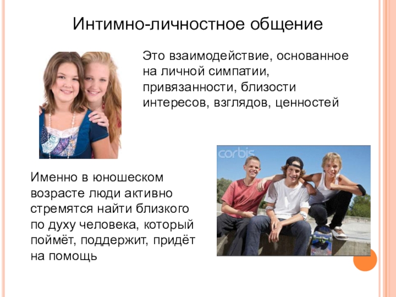 Именно в юношеском возрасте люди активно стремятся найти близкого по духу человека, который поймёт, поддержит, придёт на помощь