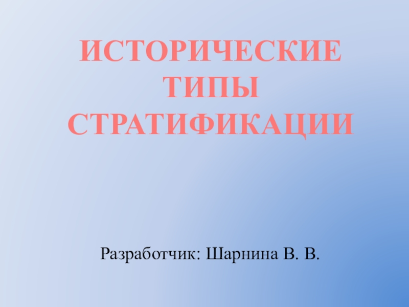 ИСТОРИЧЕСКИЕ ТИПЫ СТРАТИФИКАЦИИРазработчик: Шарнина В. В.