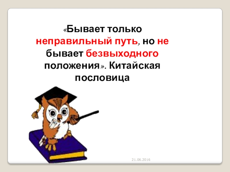 Слайд 3«Бывает только неправильный путь, но не бывает безвыходного положения». Китайская пословица