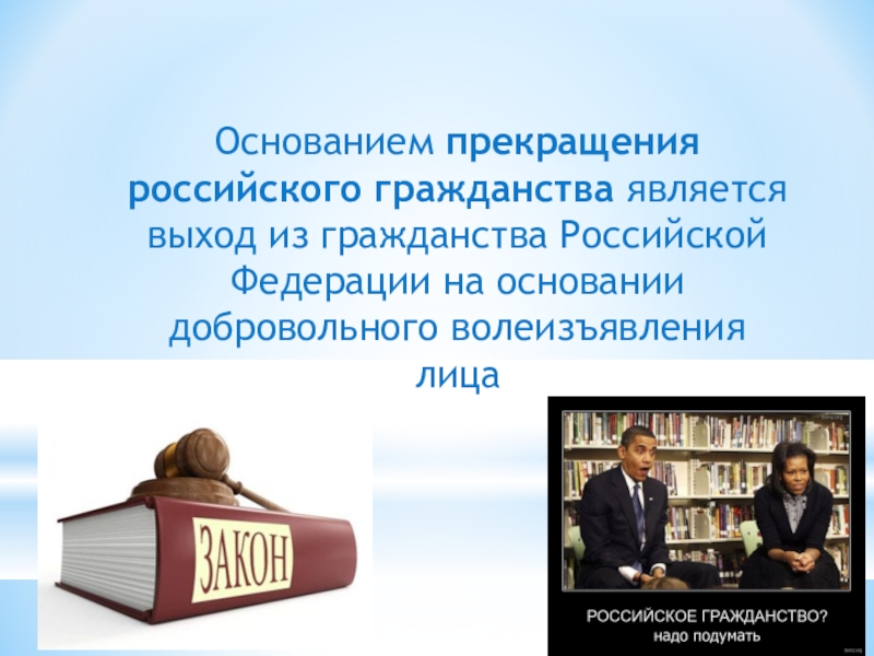 Слайд 2Под гражданством понимается устойчивая правовая связь лица с Российской Федерацией, выражающаяся в совокупности
