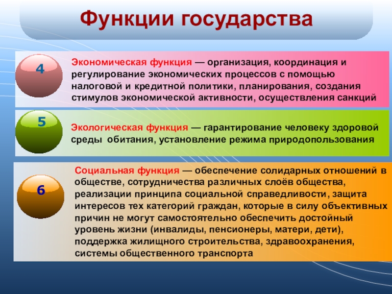 Политическая функция — обеспечение политической стабильности, выработка программно-стратегических целей и задач развития общества