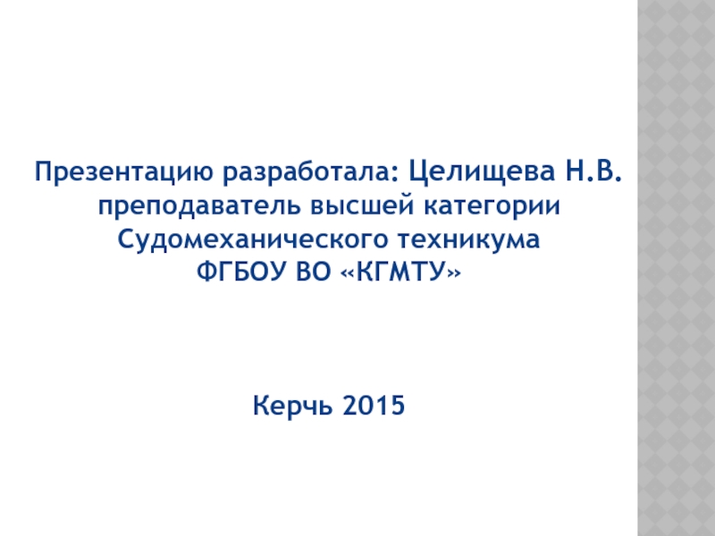 Презентацию разработала: Целищева Н.В. преподаватель высшей категории Судомеханического техникума ФГБОУ ВО «КГМТУ»  Керчь 2015