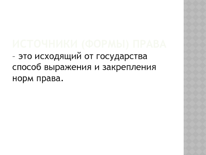 Слайд 7Источники (формы) права – это исходящий от государства способ выражения и