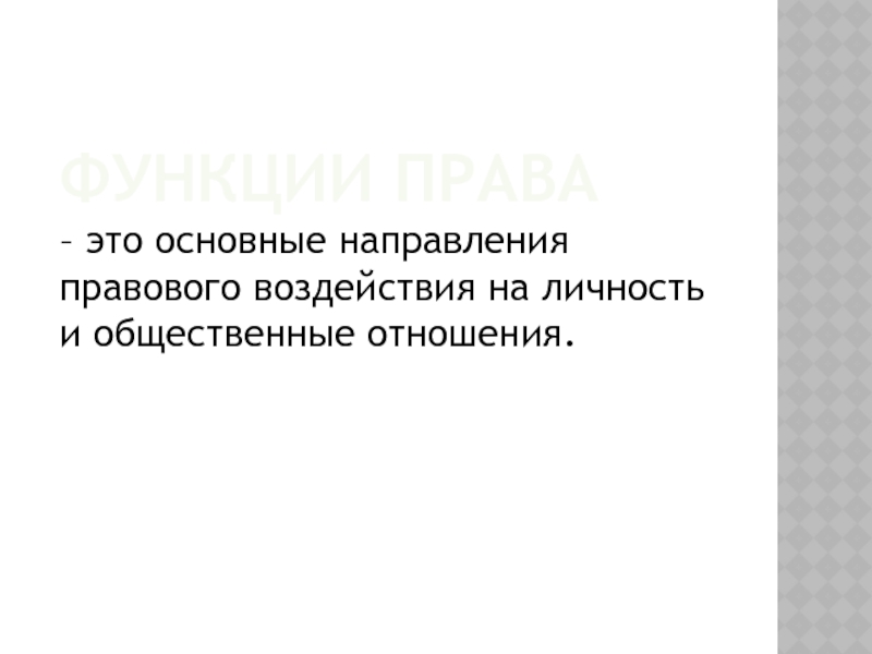 Слайд 5Функции права – это основные направления правового воздействия на личность и