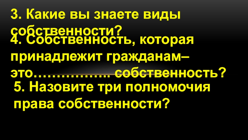 5. Назовите три полномочия права собственности?