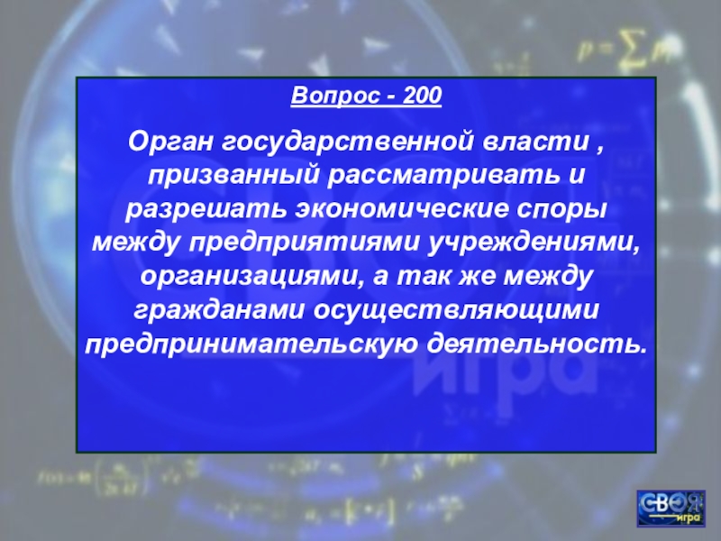Орган государственной власти , призванный рассматривать и разрешать экономические