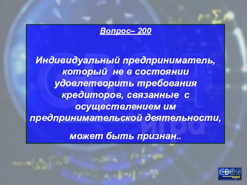 Индивидуальный предприниматель, который не в состоянии удовлетворить требования кредиторов, связанные