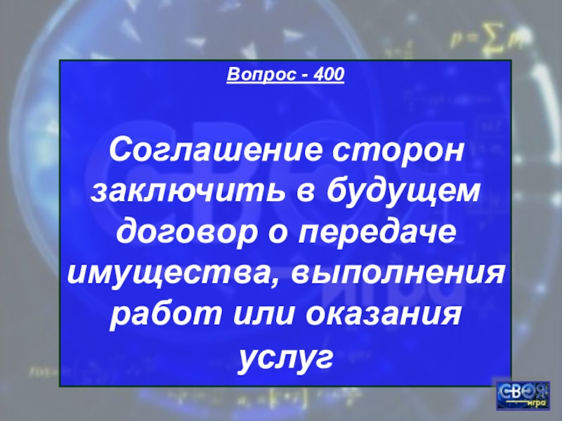 Соглашение сторон заключить в будущем договор о передаче имущества,