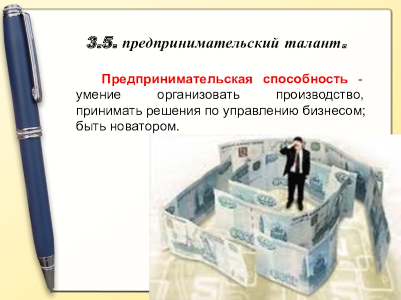 Слайд 28 Предпринимательская способность - умение организовать производство, принимать решения по