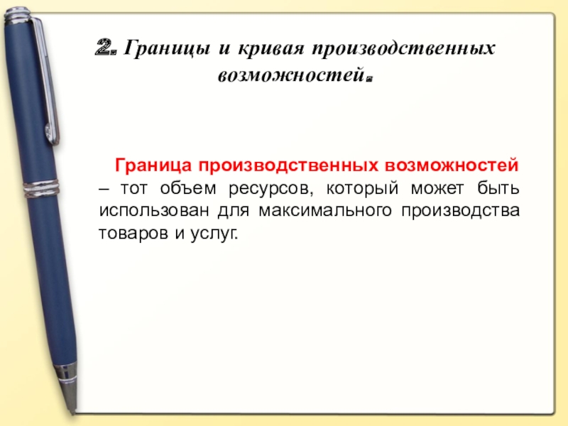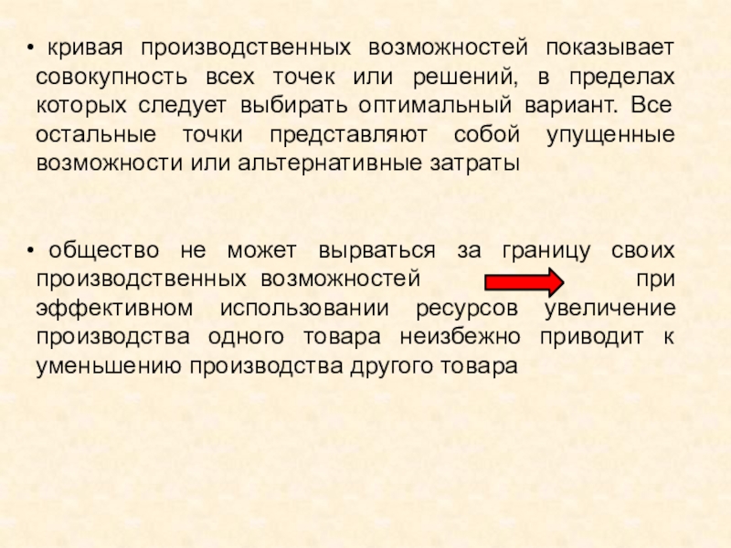 общество не может вырваться за границу своих производственных возможностей при эффективном использовании ресурсов увеличение производства одного товара неизбежно приводит к уменьшению производства другого товара