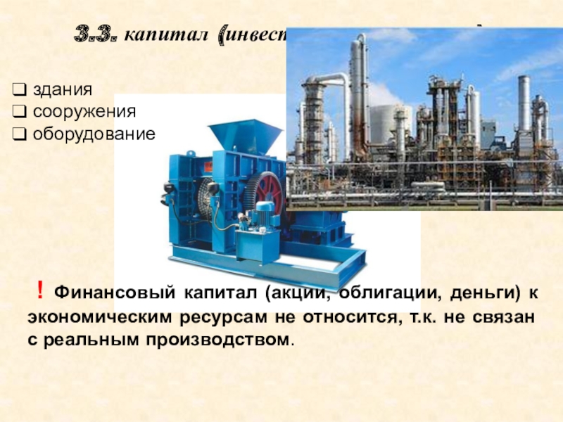 Слайд 24 Фактор «капитал» - это задействованные в производстве и непосредственно