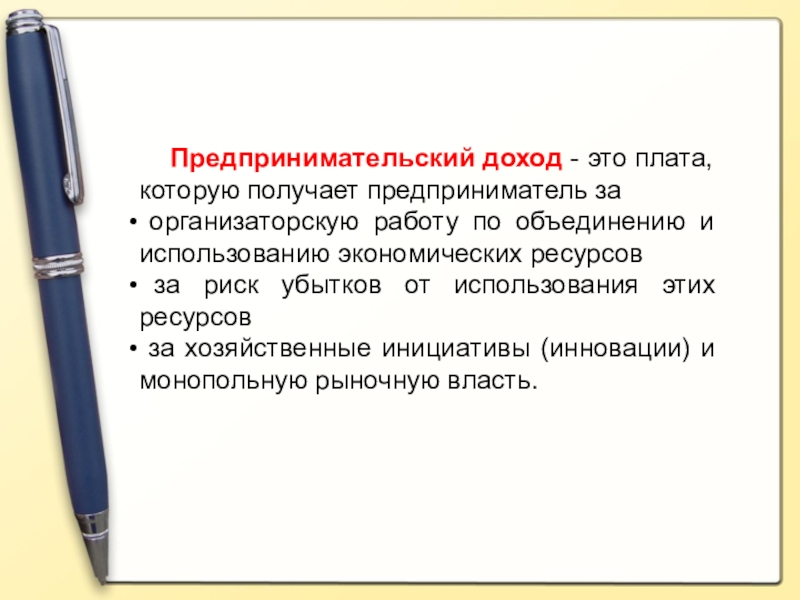 Слайд 38 Величина предприни-мательского дохода колеблется прежде все-го за счет экономичес-кой