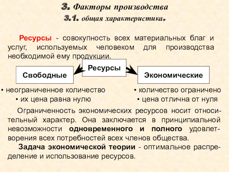 Ограниченность экономических ресурсов носит относи-тельный характер. Она заключается в принципиальной невозможности одновременного и полного удовлет-ворения всех потребностей всех членов общества.