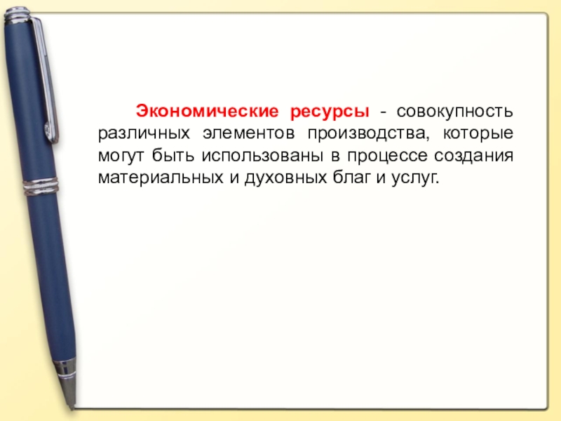 Слайд 17 Экономические ресурсы - совокупность различных элементов производства, которые могут
