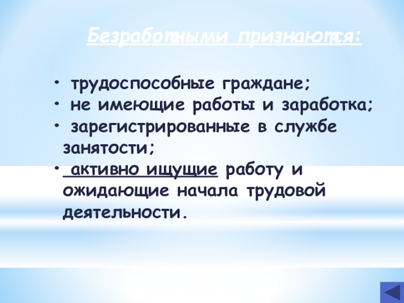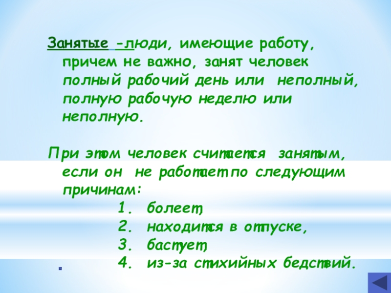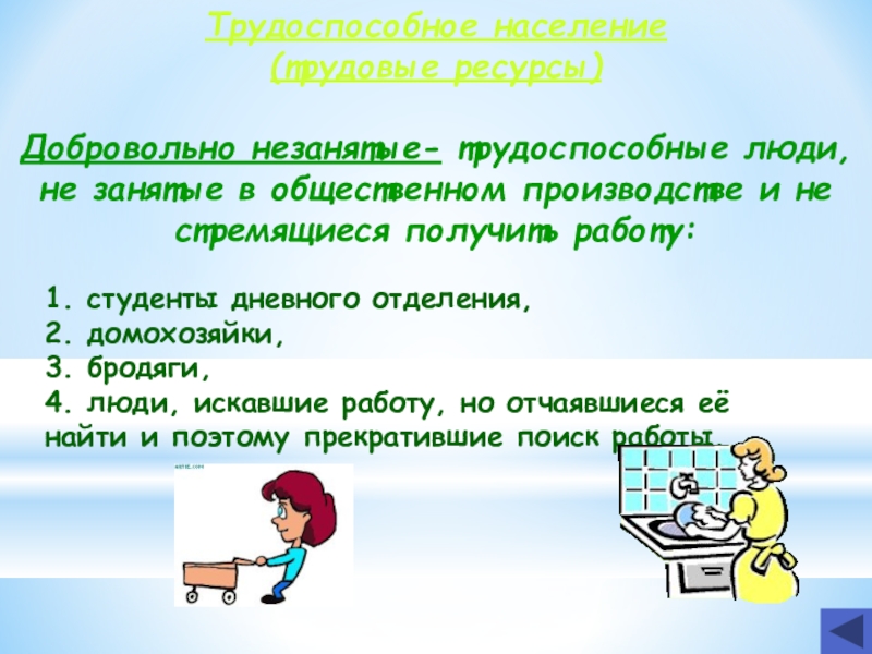 4. люди, искавшие работу, но отчаявшиеся её найти и поэтому прекратившие поиск работы.
