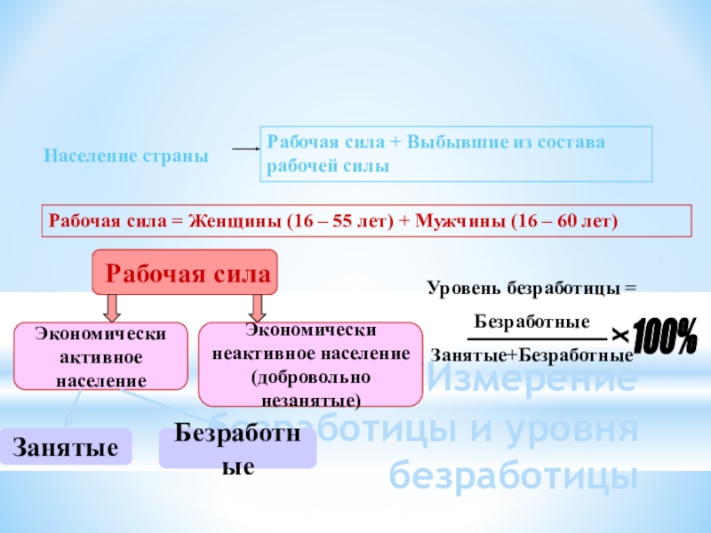 Рабочая сила = Женщины (16 – 55 лет) + Мужчины (16 – 60 лет)