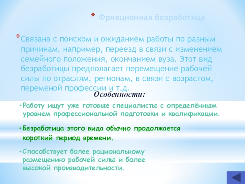 Безработица этого вида обычно продолжается короткий период времени.