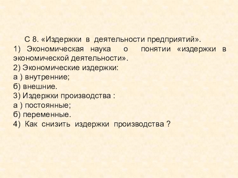 Эти меры ведут к снижению величины всех издержек и способствуют росту прибыли.